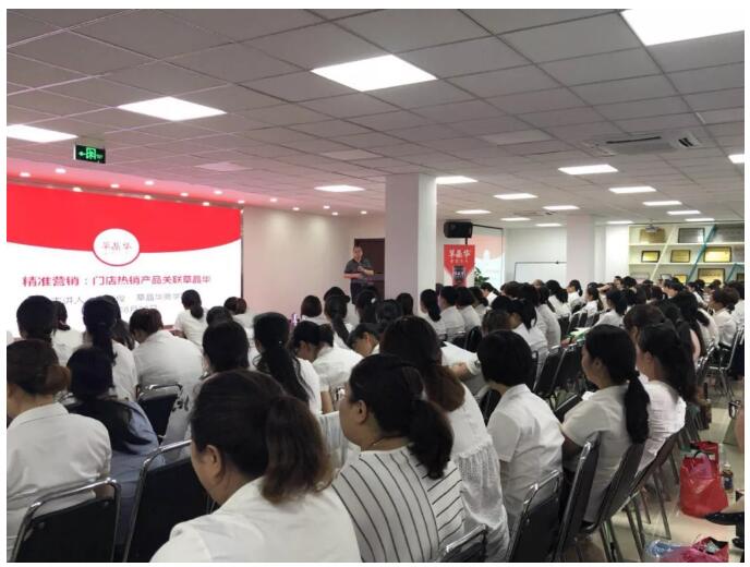 ▲草晶華商學(xué)院院長曹曉俊為店員講授熱銷產(chǎn)品關(guān)聯(lián)知識