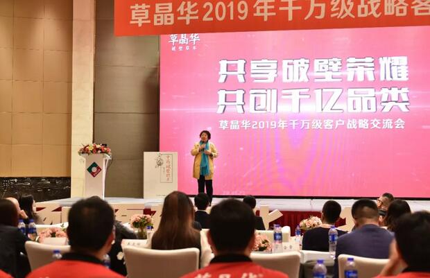 天濟(jì)藥業(yè)集團(tuán)總裁趙金萍分享了2018年銷售草晶華的傳奇。趙總說,2018年草晶華在天濟(jì)的銷售創(chuàng)造了近6000萬的傳奇,給她最大的感受是草晶華的專業(yè),“兩會(huì)兩工程”在業(yè)績“神話”中起到了無與倫比的作用。在合作中草晶華與天濟(jì)建立了“一家人”的濃厚感情,雙方互相激勵(lì)與成長,持續(xù)做一件事一定能成功,那就是:讓草晶華成為消費(fèi)者提升生活品質(zhì)的選擇?!跋嘈挪菥A一定賣得好,老百姓一定會(huì)感謝我的!”一句淳樸的話語,道出了中醫(yī)藥人的價(jià)值。
