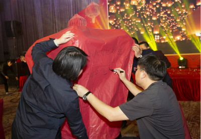 具有神圣儀式感的放天燈,把現(xiàn)場氛圍迅速從熱烈轉(zhuǎn)變?yōu)槊C穆莊嚴(yán)。大家紛紛圍攏到桌前的天燈,心中許下美好的愿望,有的拿起筆,在天燈上寫下心愿與祝福,放飛夢想。