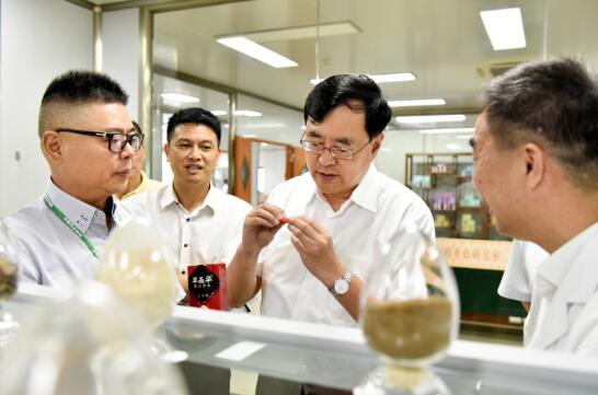 6月21日上午,中山市委書記陳旭東率市商務局、市發(fā)改局等部門領導一行,到中智藥業(yè)集團調(diào)研。在中智藥業(yè)集團董事長賴智填陪同下,陳書記一行參觀了國家中醫(yī)藥管理局中藥破壁飲片技術與應用重點研究室、中藥破壁飲片國家與地方聯(lián)合工程研究中心,聽取了中智藥業(yè)在研發(fā)、生產(chǎn)、產(chǎn)品市場占有率、粵港澳創(chuàng)新項目合作等方面的情況的匯報,鼓勵企業(yè)繼續(xù)充分利用與澳門科技大學項目合作的平臺和契機,加強粵港澳創(chuàng)新合作,借助粵港澳大灣區(qū)的創(chuàng)新力量順勢發(fā)展。