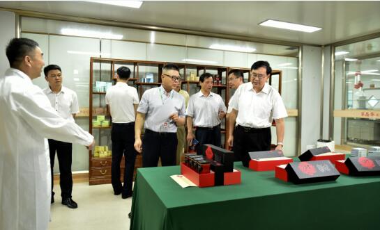 陳旭東書記(左三)在詳細了解草晶華破壁草本的創(chuàng)新特點