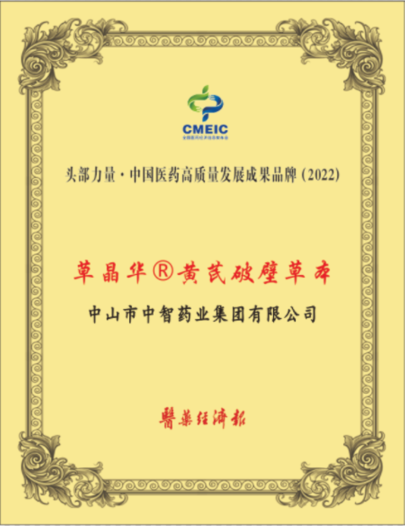 全國醫(yī)藥經(jīng)濟信息發(fā)布會,是由國家藥品監(jiān)督管理局南方醫(yī)藥經(jīng)濟研究所主辦的權(quán)威行業(yè)大會,到今年已經(jīng)連續(xù)舉辦34屆。授予草晶華黃芪破壁草本“頭部力量·中國醫(yī)藥高質(zhì)量發(fā)展成果品牌(2022)”及中智藥業(yè)“頭部力量·中國醫(yī)藥高質(zhì)量發(fā)展成果企業(yè)(2022)”榮譽并表彰,代表了行業(yè)權(quán)威,也代表了草晶華品牌經(jīng)濟新增長趨勢被廣泛看好,頭部價值優(yōu)勢凸顯。