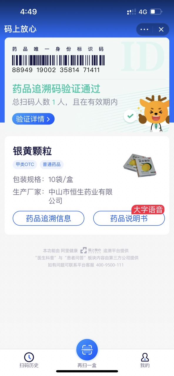 為進一步方便顧客使用,我司同時采取“在藥品追溯碼系統(tǒng)中更換修訂后的說明書”的方式告知顧客,顧客只需按掃碼查詢的方式,即可獲取修訂后的銀黃顆粒說明書,不會影響藥品正常使用。