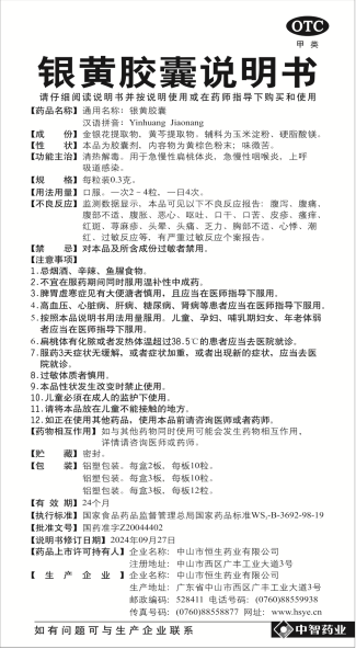 根據(jù)《國(guó)家藥監(jiān)局關(guān)于修訂復(fù)方感冒靈制劑和銀黃口服制劑說明書的公告(2024年第81號(hào))》的要求,我司對(duì)銀黃膠囊(國(guó)藥準(zhǔn)字Z20044402)說明書進(jìn)行了修訂和備案,并從2412011A批銀黃膠囊啟用了修訂后的說明書。同時(shí)按照最新國(guó)家藥監(jiān)局對(duì)說明書修訂的要求,為了使該品種使用者充分知悉說明書的修訂情況(內(nèi)容詳見說明書修訂前后內(nèi)容),我司將修訂情況以告知函的形式將修訂情況予以告知。說明書修訂后的內(nèi)容對(duì)我司在市場(chǎng)上流通的銀黃膠囊適用,請(qǐng)?jiān)谑褂们白屑?xì)閱讀,按說明使用或在藥師或醫(yī)師的指導(dǎo)下使用。