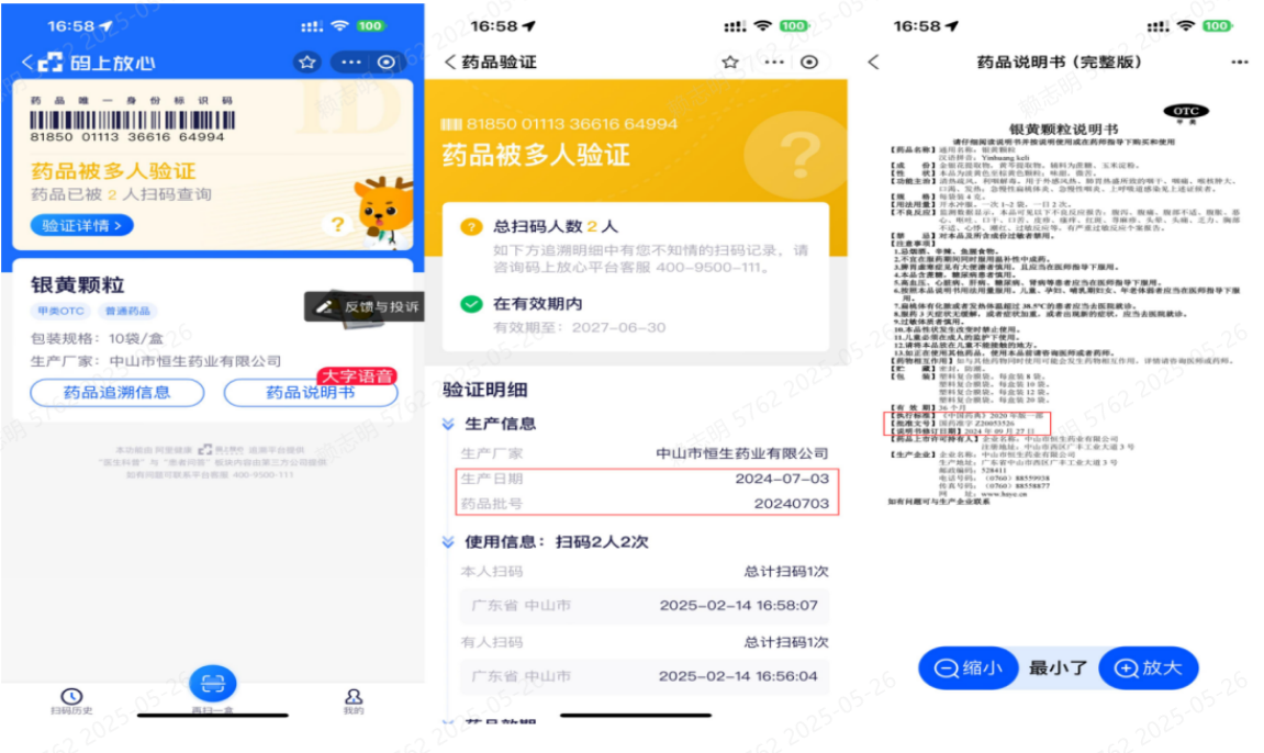 掃碼查詢:使用淘寶/支付寶掃描藥品追溯碼,進入頁面后點擊【藥品說明書】欄目,即可查看完整版電子說明書(附件2為掃碼操作指引)。