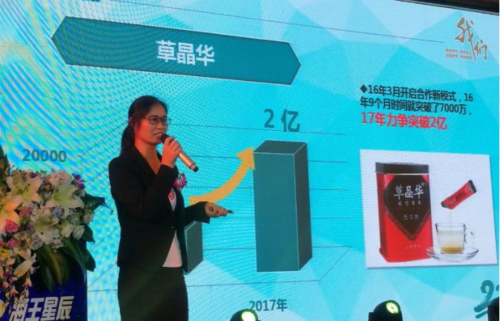 海王星辰營運部副總監(jiān)丁艷姿,在分享品牌商品營運經驗時著重說,“十大黃金單品”草晶華破壁草本,在門店形成熱銷的大好趨勢,這種趨勢為團隊提振了信心。據她介紹,海王星辰在2016年3月引進草晶華破壁草本,9個月時間銷售達到7000萬元。“第一年合作,‘試水’成功,我們整個團隊很受鼓舞、信心十足,今年努力沖刺2億元。”丁艷姿對未來滿懷信心。