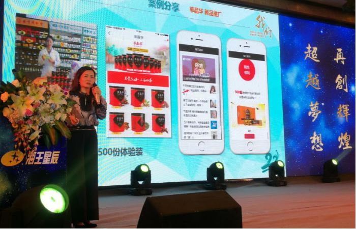 海王星辰電商中心總經理劉旭也不甘落后,她說,草晶華破壁草本在海王星辰受到的熱捧,不僅僅是線下門店,線上電商平臺同樣形勢喜人。電商平臺首次引進草晶華破壁草本進行營銷活動時,顧客回購率就達到了30%,遠遠高于一般商品的回購率。“大家都很喜歡草晶華破壁草本!”她鏗鏘有力的語氣回蕩在海王星辰大慶之夜。