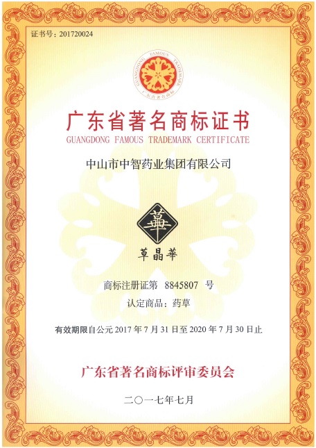 “草晶華”品牌獲認定為廣東省著名商標 !